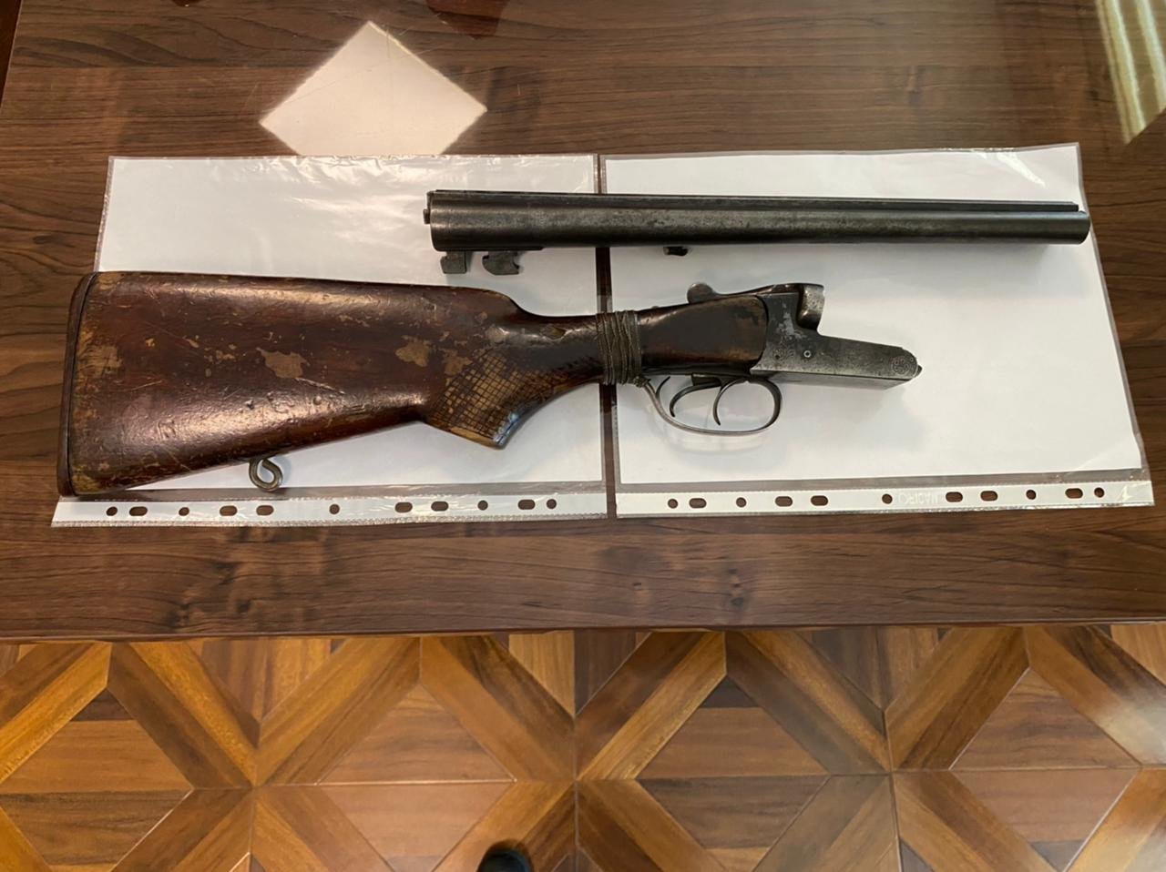 Əməliyyat tədbirlərinin davamı olaraq M.Axundovun yaşadığı evə keçirilmiş axtarış zamanı isə oradan bir ədəd lüləsi kəsilmiş odlu silah aşkar edilərək götürülüb.